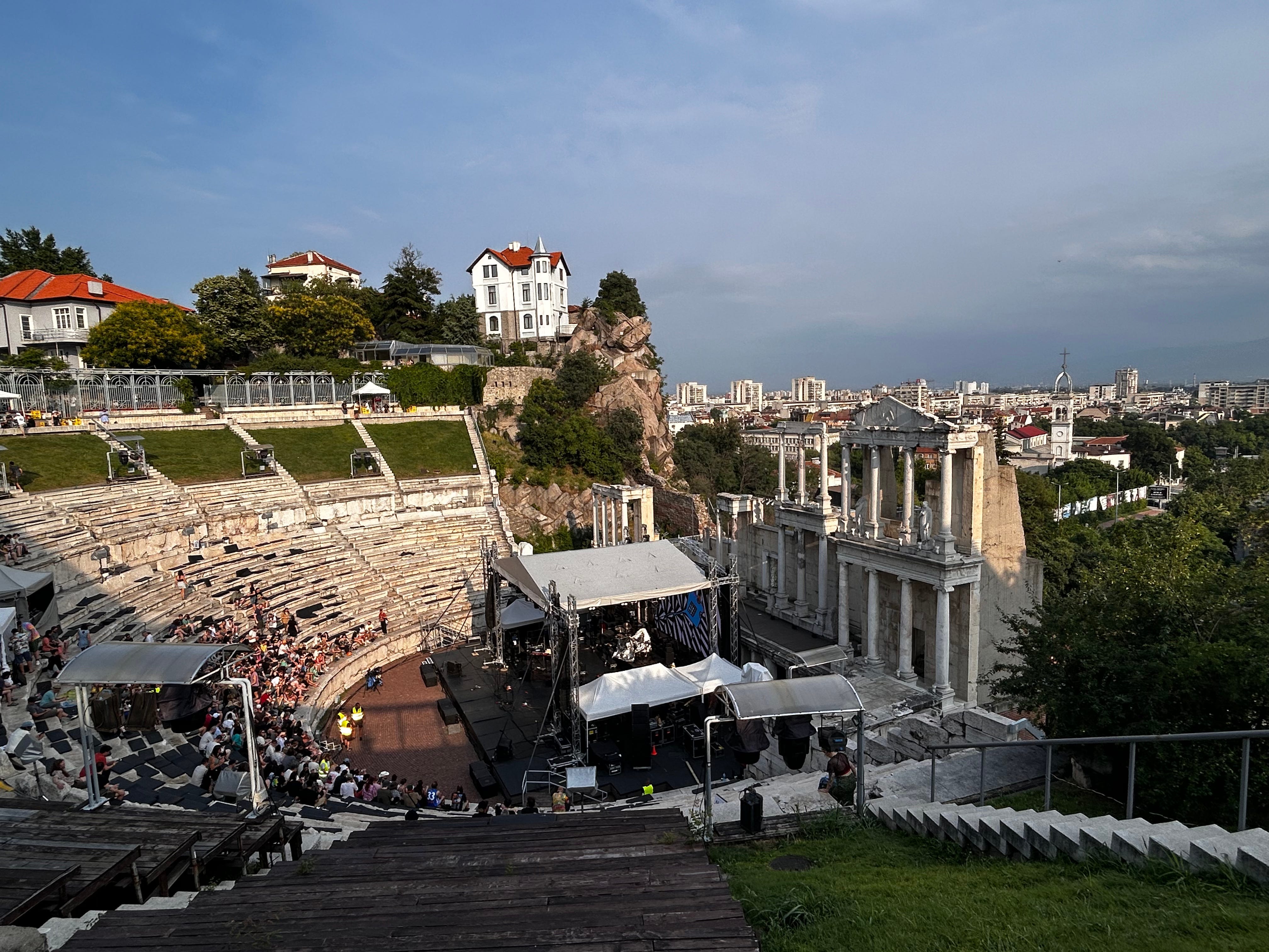 If this were physical mail, it’s safe to say that I had too much fun and lost track of the time needed to write and send postcards. Looking back now, it feels right to blame it on two seemingly disparate things that feel related. The first thing is that Plovdiv is described as “Ancient and eternal”; and the second thing is the term “Collective effervescence”. There was a feeling of kismet the whole three days we stayed there; pinching ourselves that we’re alive and able to experience two ancient and sacred things in real time. The collective beat of heartbeats, in the thousands, in rhythm reaching across space and time. The city’s pulse seemed to have synced to the passion of all the Bulgarian and international fans there, like us, for the King Gizzard and the Lizard Wizard Europe Residency Tour. The chance for togetherness and shared experience conjures that portal between memories that defy ageing.